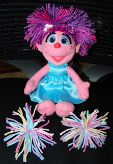 The result: Yarn pom poms inspired by Abby Cadabby's hair.